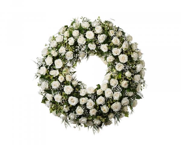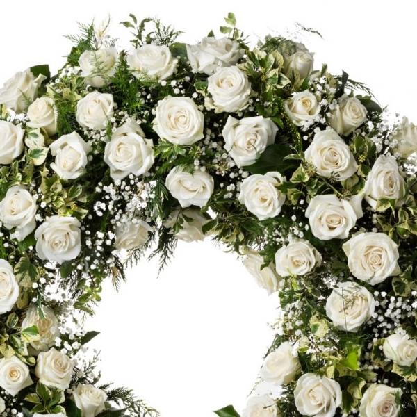 Corona de rosas blancas